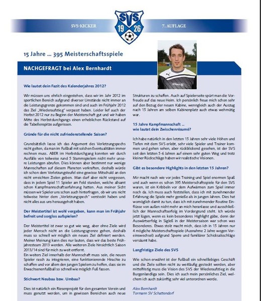 Am Wochenende ist es wieder soweit, der SVS Kicker 2013 wird im Ort ausgetragen. Als kleinen Vorgeschmack könnt ihr ein Interview von mir bereits vorab lesen...