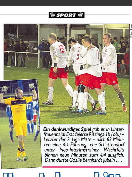 Eine sehr turbulente Woche endet mit einem turbulenten Match in Unterfrauenhaid, nach 1:4 Rückstand, mit 4:4. "Bin Stolz auf das Team und sehe dieses Unentschieden als gefühlten Sieg". Da ich vom Reporter angerufen wurde, gibts dieses mal einen Spielbericht ausnahmsweise morgen auf http://www.fanreport.com/at/bgld/liga/ii-liga-mitte/ und nícht unter Spielberichte.