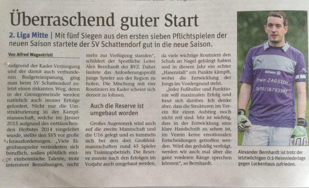 Vor genau einem Jahr mussten wir uns aus sportlicher Sicht eingestehen, dass wir unsere Ziele nicht erreichen konnten und haben auch eine Kurskorrektur angekündigt. Jetzt kann ich sagen, dass wir zufrieden mit der Herbstsaison 2015 sind. 29 Punkte, nur 3Niederlagen, 7 „zu Null Spiele“, und Platz3 sind eigentlich genau die Ziele, welche wir uns gesteckt haben, wobei wir auch wussten, dass es aufgrund der Tatsache, dass der Kader im Durchschnitt sehr jung ist auch anders laufen hätte können. Aber auch das hätte uns nicht aus der Ruhe gebracht, denn wenn man mit jungen Spielern arbeitet, sind Fehler und Leistungsschwankungen erlaubt und bei uns einkalkuliert. „Fussball ist ein Fehlersport, wer weniger macht gewinnt“.