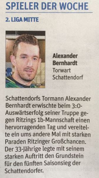 Nach dem Regionalligaspiel der Ritzinger ersten Mannschaft gab es ein sehr attraktives 2. Liga Spiel. Beide Mannschaften zeigten eine gute Leistung und das Spiel hätte auch 4:7 enden können. Letztendlich waren wir an diesem Abend die abgeklärtere Mannschaft und siegten durch Tore von M. Mörz, P.Bali und Z. Varga mit 0:3.