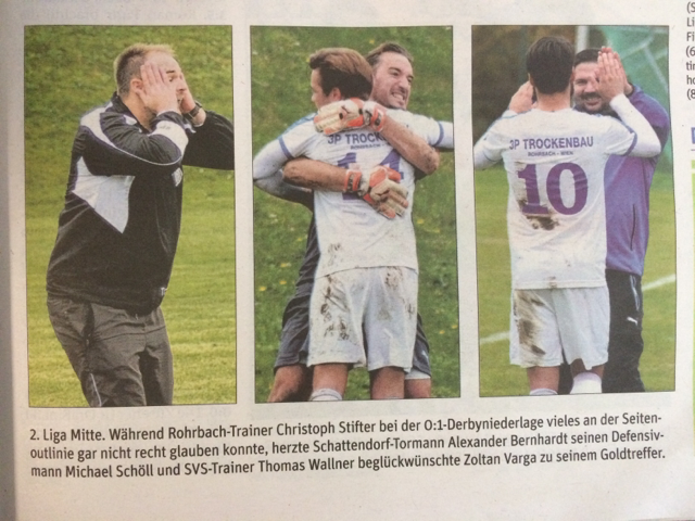 Das abgesagte Derby gegen den SV Rohrbach wird nunmehr am Montag, dem 26.10.2015 um 10:30 Uhr nachgetragen. Die Reserve spielt anschließend um 12:30 Uhr. Für Speiß und Trank ist am Nationalfeiertag im Grenzstadion gesorgt, sodass einem Derby zu einer "ungewöhnlichen Beginnzeit" nichts im Wege steht.
