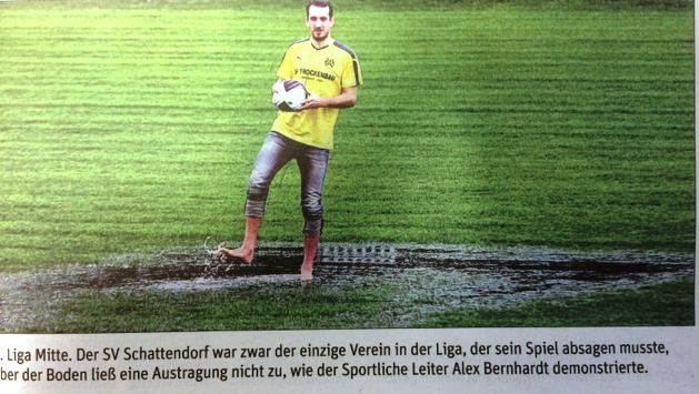 den ersten Anblick besser als gestern aussieht, ist an ein Spiel nicht zu denken. Ersatztermin wird der 26.10.2015 sein, wobei die Beginnzeit mit 10:30 Uhr im Raum steht, dies aber noch nicht