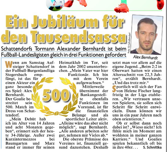 Wir können nunmehr auf den Höhepunkt der 90-Jahr Feierlichkeiten zurückblicken und auf wunderschöne Tage mit einigen Highlights zurückblicken. Bei tollem Wetter trafen sich die Legenden aus Schattendorf und Loipersbach zu einem legendären Derby (Danke an die Organisatoren Harry Pinter und Tom Hauer), ehe sich der Bundesligist aus Mattersburg mit dem gesamten Kader im Grenzstadion präsentierte. Bei unserer neu formierten Mannschaft fehlten zwar noch einige Spieler urlaubs- bzw. verletzungsbedingt, aber wir lieferten einen tollen ersten Test und haben vorallem in taktischer und kämpferischer Hinsicht überzeugt. Schlussendlich endete das Highlight für uns Spieler mit einem 1:3 für den Bundesligistigen und der Testspielauftakt kann nach einer harten ersten Trainingswoche als gelungen angesehen werden.