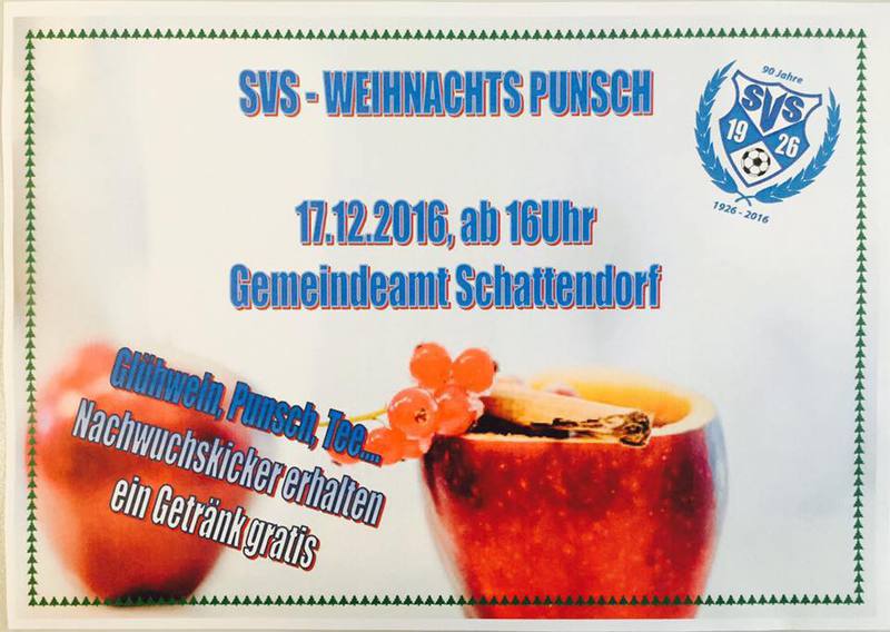 Die nächsten Termine der SVS Spieler sind das Abschlusstraining am kommenden Dienstag, der Glühweinstand am 17.12.2016 und die Teilnahme am Hallenturnier in Steinbrunn am 18.12.2016