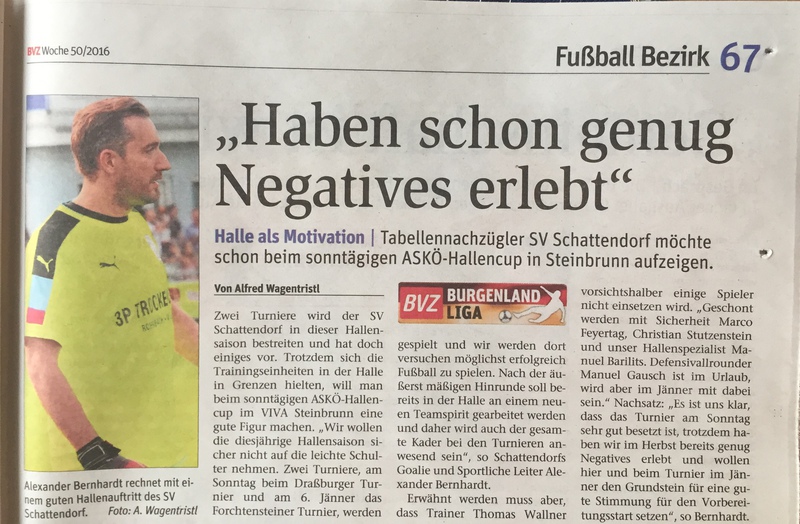 - 18:12.2016: Hallenturnier in Steinbrunn