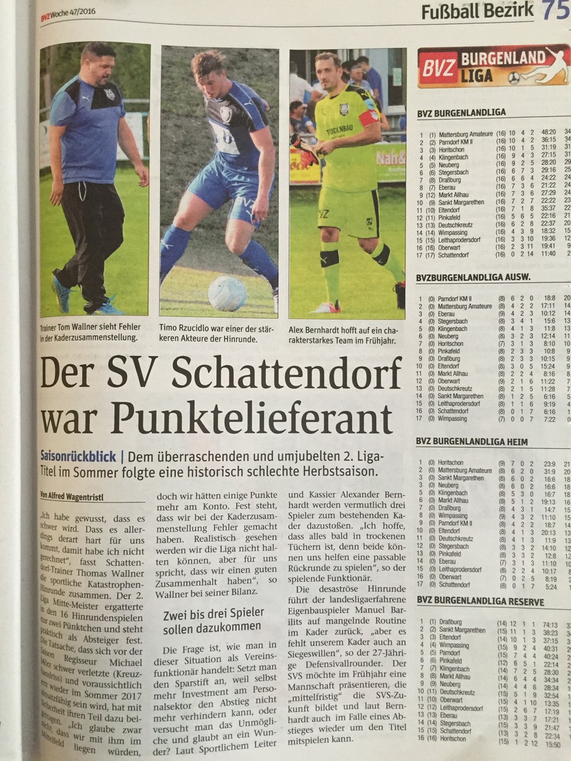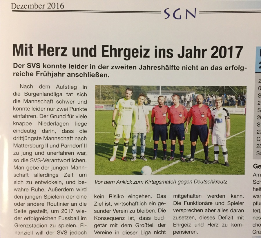 Ich bin zwar nach wie vor überzeugt, dass dies der richtige Weg war, denn alle Spieler sind charakterlich schwer in Ordnung und haben auch fussballerische Qualitäten, welche auch burgenlandligatauglich sind, ALLERDINGS ist in dieser Zusammensetzung die Mannschaft nicht reif für die Liga, da wir 2-3 Routiniers (natürlich war auch mit dem langfristigem Ausfall von Michi Mörz etwas Pech dabei, aber dies als Grund zu nennen, wäre zu einfach) zu wenig haben, welche der jungen Mannschaft die notwendige Struktur geben. Dies müssen wir, die sportlich Verantwortlichen, auf unsere Kappe nehmen, wenngleich es natürlich schwer ist, die richtige Mischung aus Kaderbreite und Kaderqualität mit dem Vorsatz „finanziell gesund zu bleiben“, zu finden. Ich persönliche musste leider in diversen Verhandlungen und Gesprächen feststellen, dass noch immer Summen im Umlauf sind, welche für den SVS prinzipiell nicht in Frage kommen bzw. auch nicht möglich sind, aber ich möchte betonen, dass dies auch keinerlei Vorwurf an die Konkurrenz ist, denn gewisse Investitionen sind notwendig um in der Burgenlandliga konkurrenzfähig zu sein.