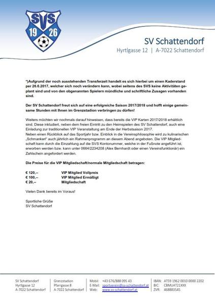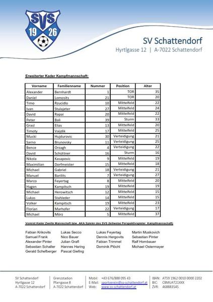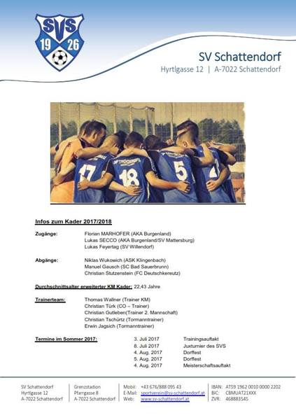 Für unsere Zuschauer, Fan´s und Interessierten haben wir bereits einige Tage vor dem Vorbereitungsstart unsere Hausaufgaben gemacht und geben einen Überblick über die Kadersituation beim SV Schattendorf in der Herbstsaison 2017, sodass aufgrund des Generationenwechsels in den letzten Jahren auch die langjährigen Zuseher einen Überblick über die jungen Kicker haben.