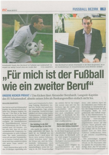 In der BVZ vom 30.11.2011 konnte man einen Bericht über den SV Schattendorf lesen, welche einen kleinen Rückblick, als auch einen Ausblick samt Zielsetzung für das Jahr 2012 beinhaltete: