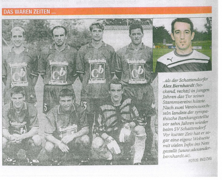 Herzlich Willkomen auf meiner Homepage. Da es mir in der fussballenfreien Zeit etwas langweilig war, wollte ich mich kreativ betätigen und so entstand diese Seite. Hier werdet ihr aktuelle Spielberichte, News rund um die Wichtigste Nebensache der Welt und aktuelle als auch Fotos aus den guten alten Zeiten finden. Natürlich werden die Spielberichte nicht so ausführlich wie auf www.sv-schattendorf.at sein, allerdings ist es vielleicht auch mal interessant den Blickwinkel eines Torhüters zu lesen.